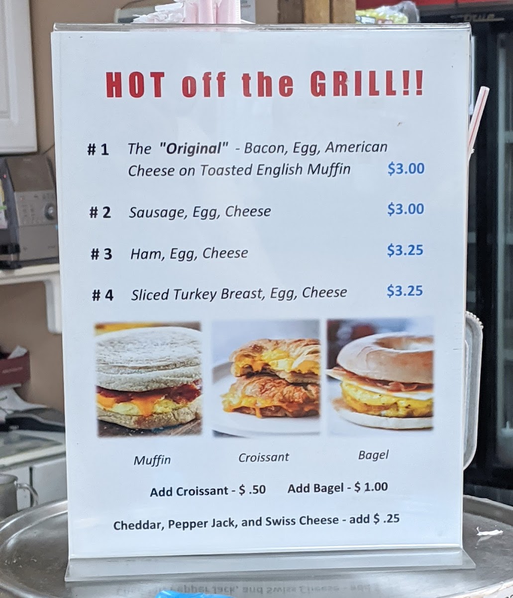 - Breakfast Sensations: Indulge in the signature "Original" Breakfast Sandwich; layers of bacon, egg, and American cheese on a toasted English muffin, all for just $4.00. Other tempting options include sausage, ham, or turkey sandwiches, each crafted for flavor.